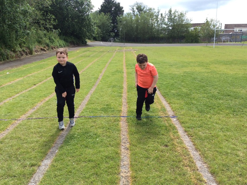 The sun shone for our sports today and what a fantastic action packed day we had on our newly developed playing field.  The morning began with a sprint race followed by shot put and sack race. In the afternoon we completed the long jump, hopping and relay races.  Miss McCallion and Mrs McCusker joined in the relay races to even up the teams and congratulations to Miss McCallion’s team who were the winners.